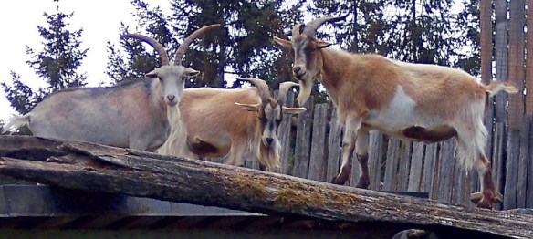 The goats live on the roof of the Old Country Market from spring to fall each year. Why the lengthy hiatus, you might wonder? Do the soggy BC winters make the sod slippery? (I’m guessing Goats Slipping Off a Roof would probably not be so charming—though there would undoubtedly be an audience for it.) The simple truth is, like many of us, they head indoors to keep warm.