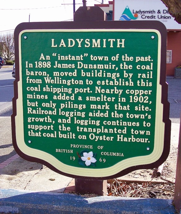 Okay, I fibbed a little. Ladysmith is much more than just a location. Founded by coal baron James Dunsmuir in 1898 and originally named Oyster Harbour, this scenic town of 8,500 people celebrates its history on almost every street corner in its commercial district. Be careful as you round a corner or you might run into an ore car. Don’t be checking your mail when you exit the post office or you might make the acquaintance of the large stone cairn located out front.