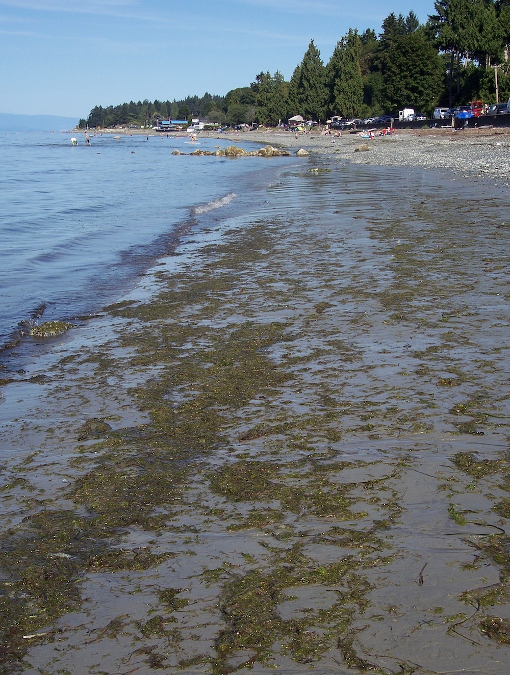 Seagrass exposed along the shore